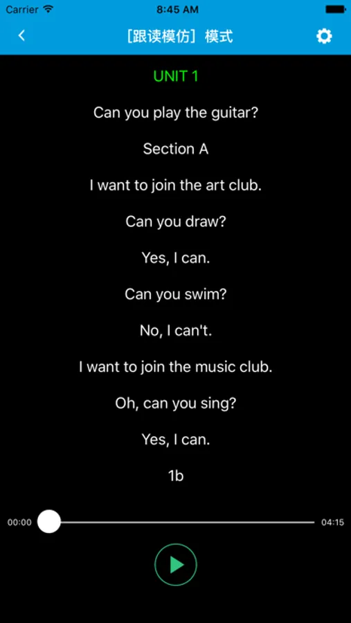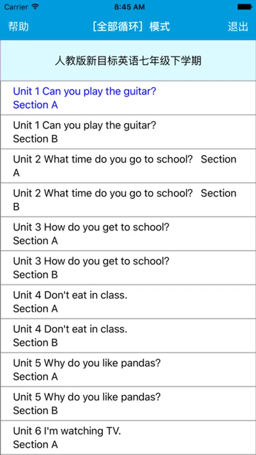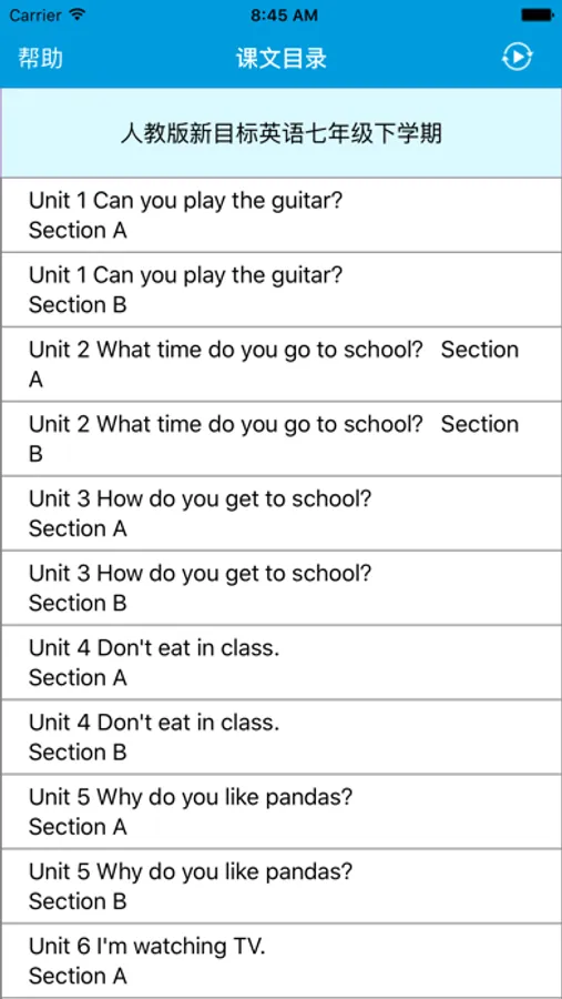 本应用对应人教版新目标初中英语七年级下课本,具有跟读模仿,自动听写,变速播放的复读机功能。