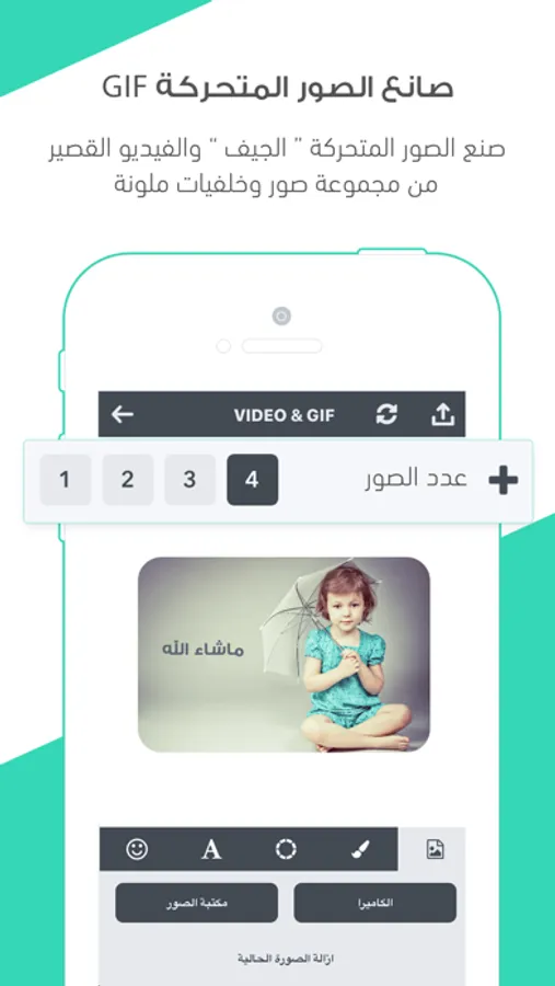 من خلال التطبيق يمكنك انشاء صور متحركة من مجموعة صور أو من مجموعة صور ونصوص أو صور وتعليق أو خلفية ملونة , كما يمكن تصدير فيديو قصير من تركيب مجموعة صور وعرضها على شكل جيف ويمكن استخدامها للانستقرام على وجه التحديد