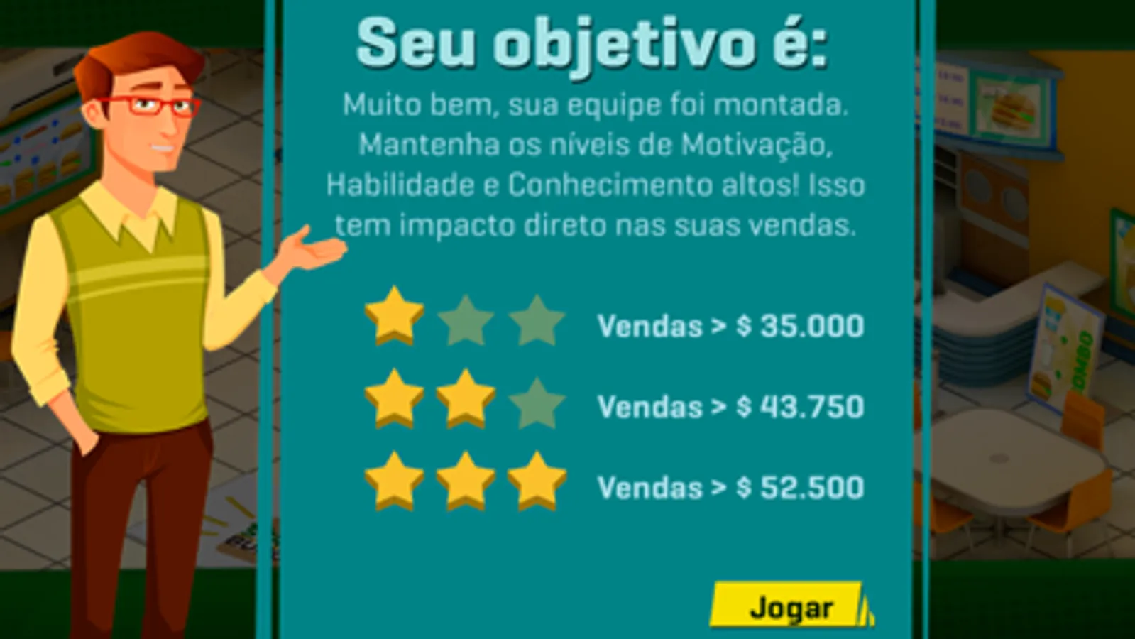 Os jogadores simulam a abertura de uma unidade de franquia e administram o dia a dia de um negócio. Durante as dez fases, diversas situações e desafios são apresentados e o jogador poderá ganhar de uma a três estrelas se atingir os objetivos propostos.