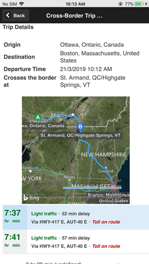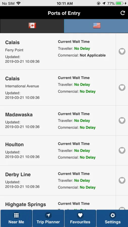 Having land border wait times at your fingertips helps you make an informed decision about where and when to cross the border. The CanBorder app provides estimated wait times at select ports of entry in Canada and the United States. Short on time? Use the trip planner function to generate an estimated best day, time and port of entry at which to cross the border, along with turn by turn directions to get you there. The CanBorder app is a free service provided by the Canada Border Services Agency.