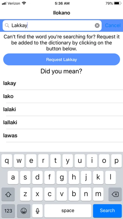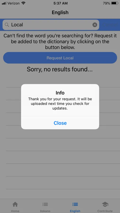 If the word you are looking for does not exist, a button will appear which will allow you to request it be added. Your request will be sent next time you tap on the "Check for Updates" button. Alternatively, you can request a word by contacting us via our contact page on our main site or message us on Facebook!