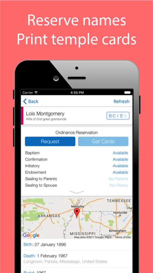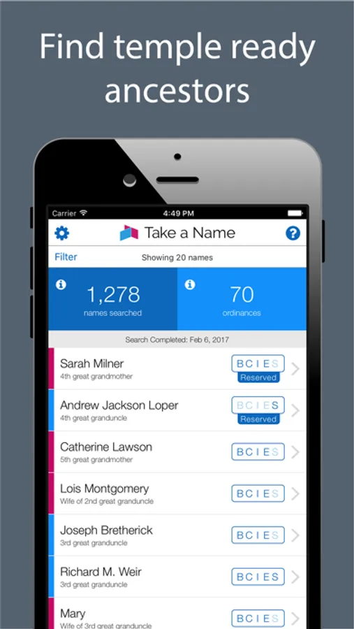 • Find temple ready ancestors—Take a Name searches the FamilySearch tree for your deceased ancestors and double checks that LDS ordinances are ready for the temple.