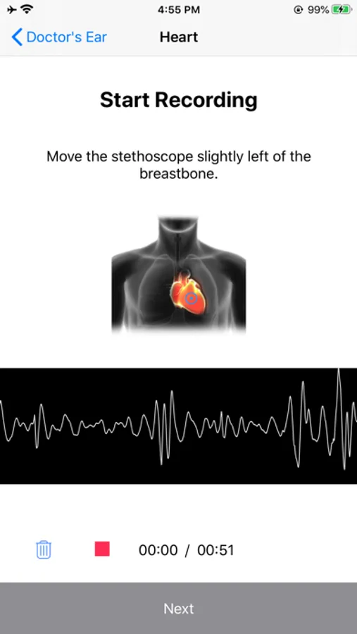 Doctor's Ear is a user-friendly application providing a convenient way to record your heart sounds, lung sounds and stomach/bowel sounds. It works with doctorgram stethoscope device. You can record and share with your doctor easily.