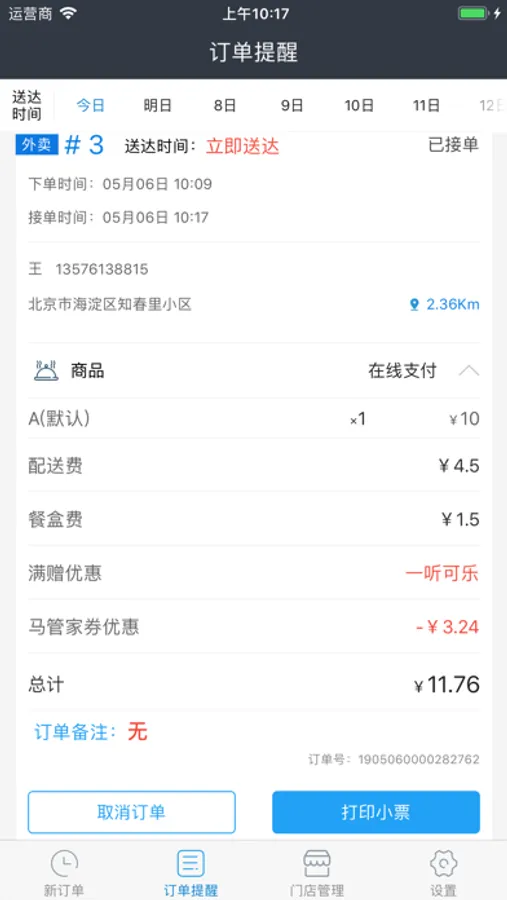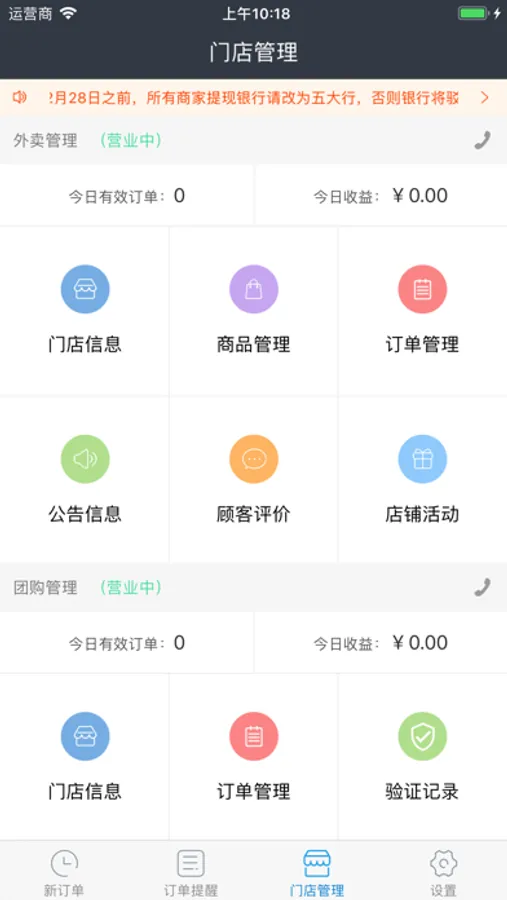 门店管理:随时更改店铺营业状态、营业时间,自由开关门店。