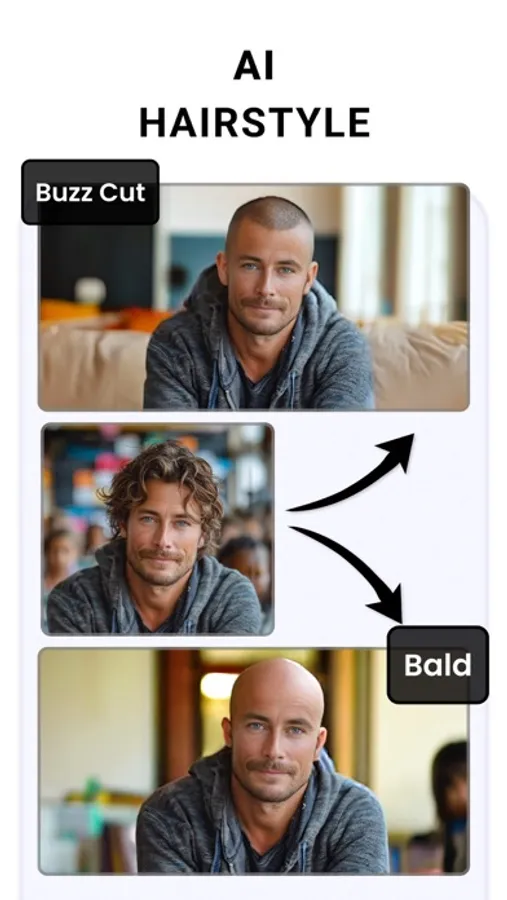 Try out new hairstyles and hair colours with AI. The AI seamlessly integrates new hairstyles into your picture, making them appear realistic; The fastest and easiest way to see which hairstyle works for you.