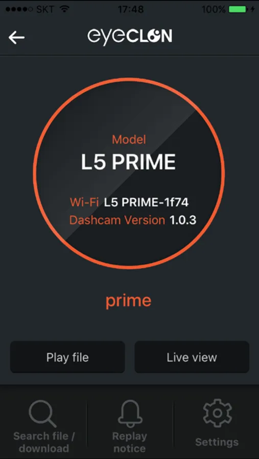 User can view live and recorderd image through smartphone which is connected to the dashcam via WiFi