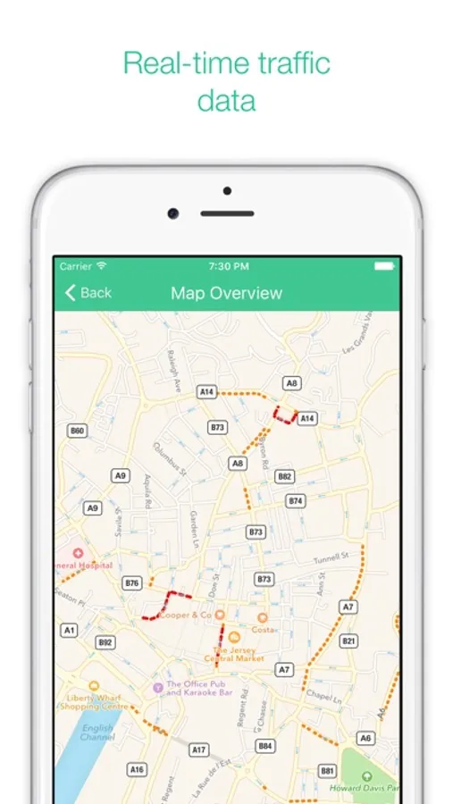 This app hopes to make planning your driving route in Jersey (Channel Islands) easier by displaying: