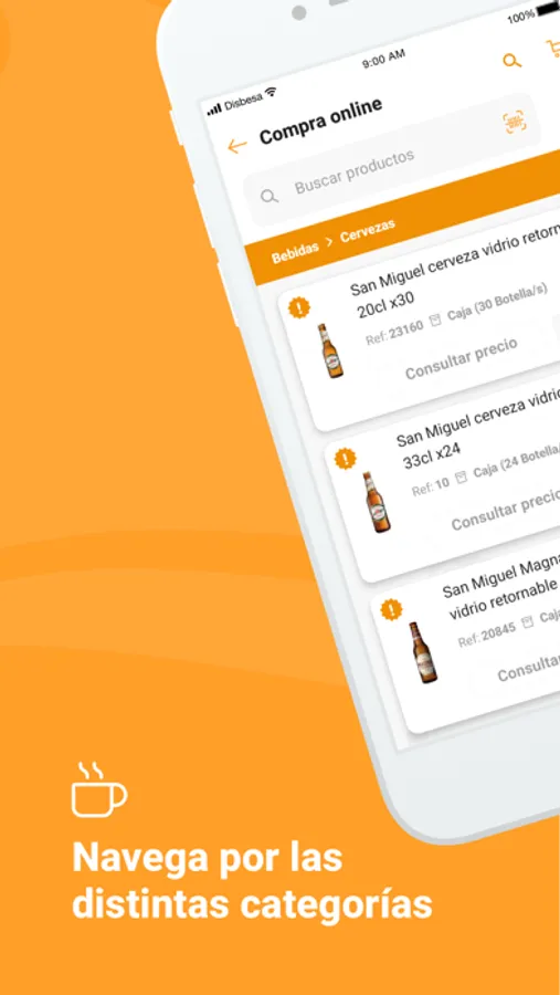 Podrás realizar tus compras desde tu móvil durante las 24 horas del día, los 365 días del año y desde cualquier punto de acceso a internet: desde tu establecimiento, tu oficina o desde el lugar más cómodo para ti.