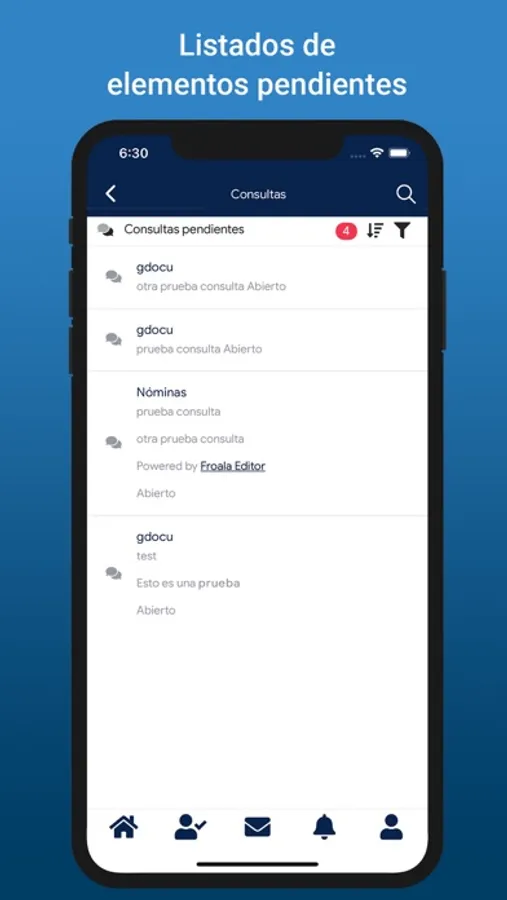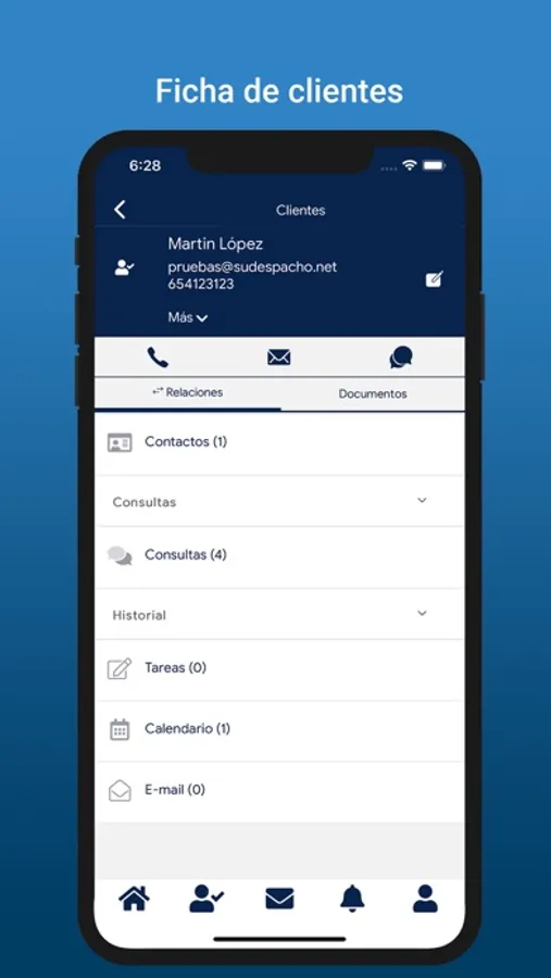 - Gestión del correo o correos electrónicos de la asesoría desde la propia app