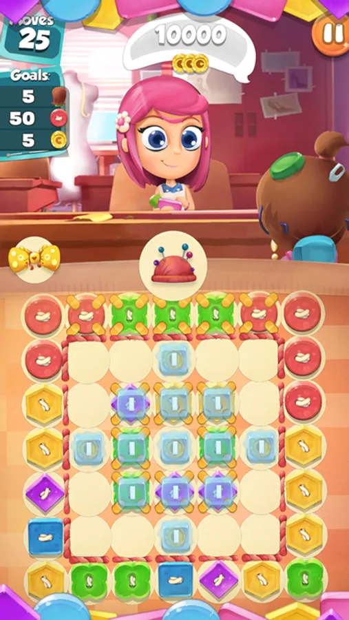* This time, our “match 3 adventure games” include cute button elements and the background story of a little tailor Rosie who needs to renovate her sewing store and satisfy her old customers. Solve all match 3 puzzles and help her succeed in her goal. Match 3 or more elements on the board, smash and crush crazy buttons and experience ultimate fun in one of the best match 3 games with bonuses!