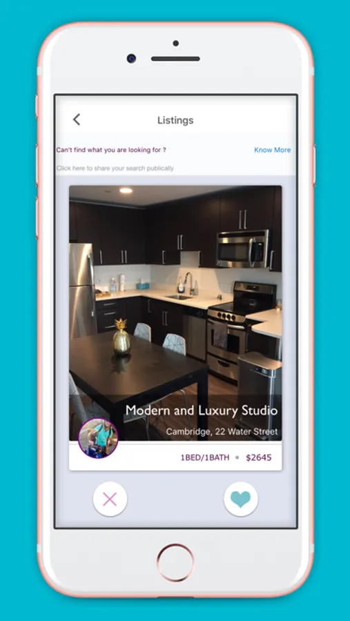 Finding a new place or a roommate is as easy as entering your search preferences, swiping through matches, messaging them and scheduling a time to meet up and see the apartment