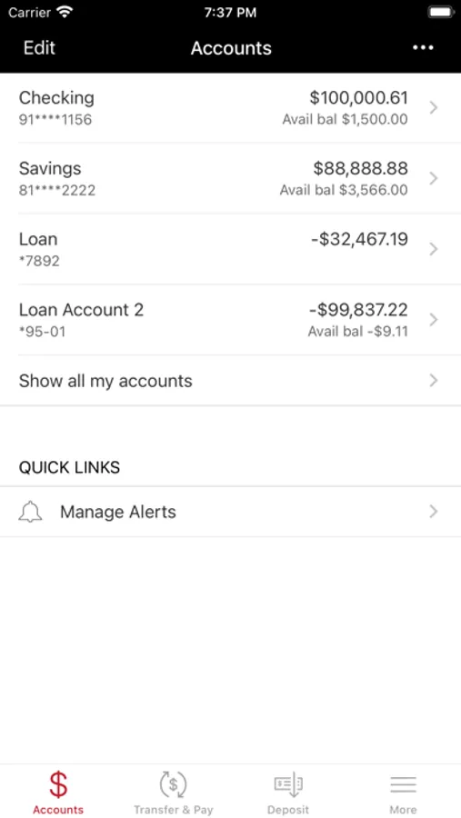 • View your current account balances