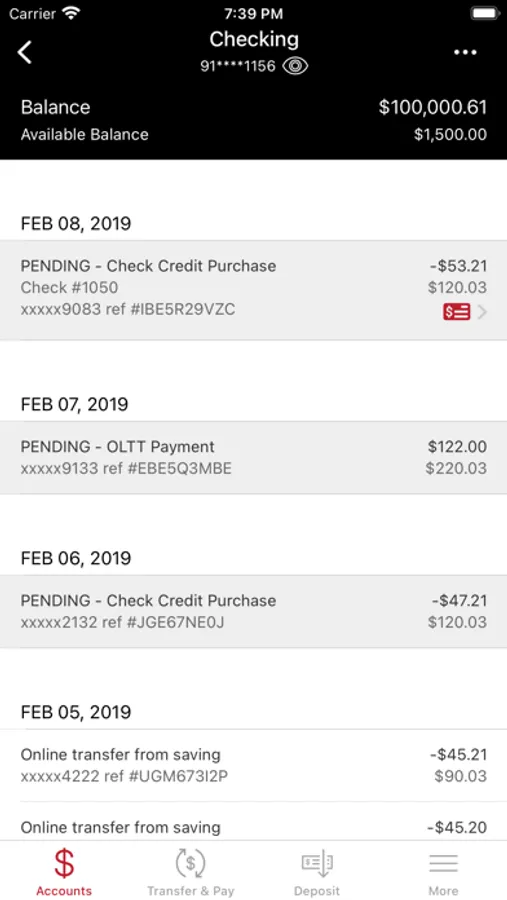 • View the most recent transactions
