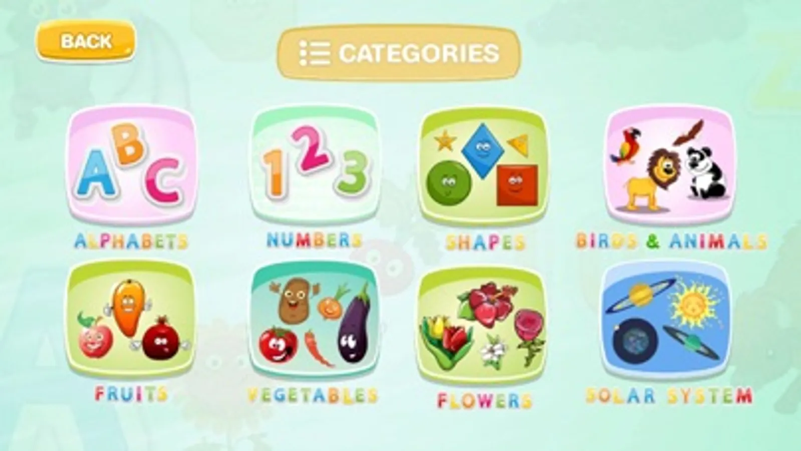 The application is developed for the good learning of the most of the basic things with fun, the following learning material is provided for the kids in the application.
