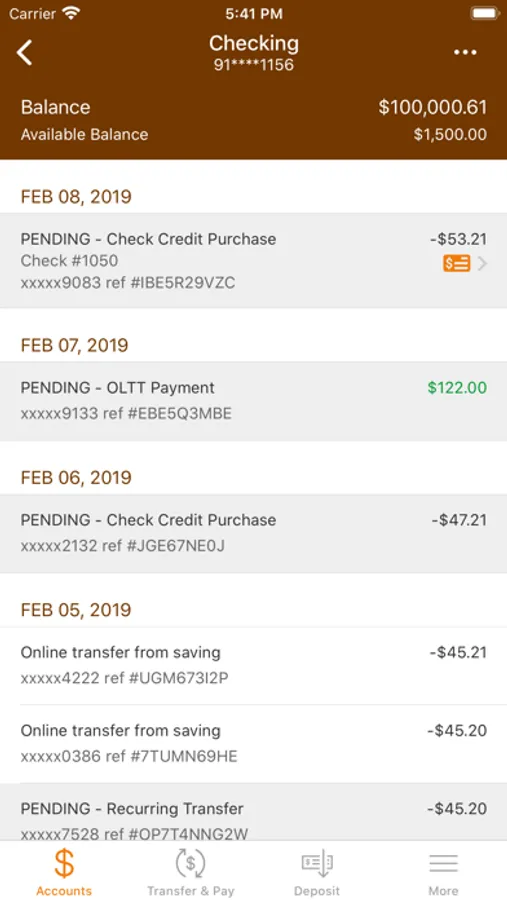 • Check your account balance and search recent transactions by date, amount, or check number.