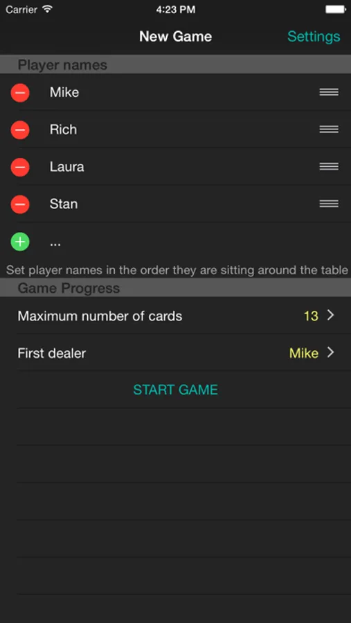 Since this card game is popular around the world, many, many scoring variants are used. The Settings pane is here for you to select how your group plays the game.