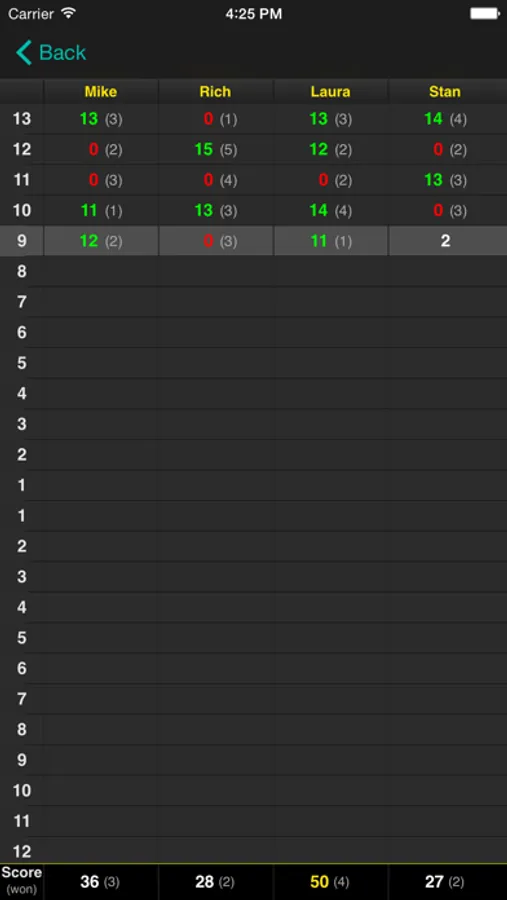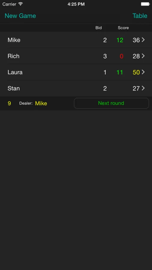 The scoring table itself looks probably the same way you are used to keep on the paper. This was my main goal when designing this app. To see the all rounds together. And to use the entire screen of the iPad.