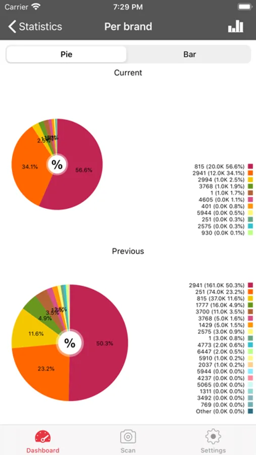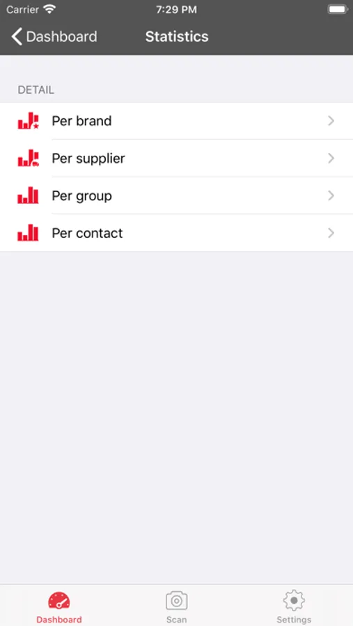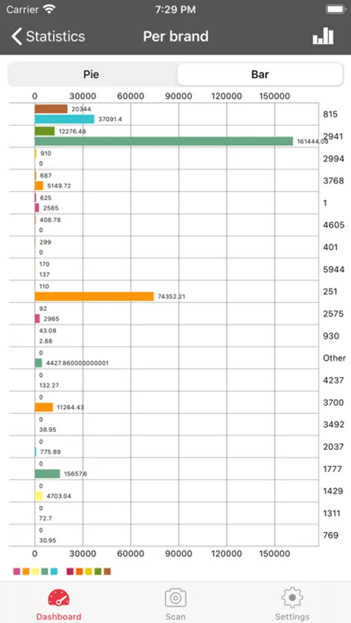 In addition you get access to several grouped statistics, displayed in a chart or a table.