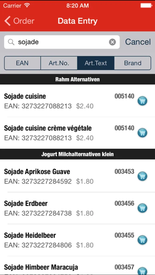 Just scan the following product examples with Shopper by opening the URL-link below with your desktop or with another device. You will come to a landing page with barcodes to scan.
