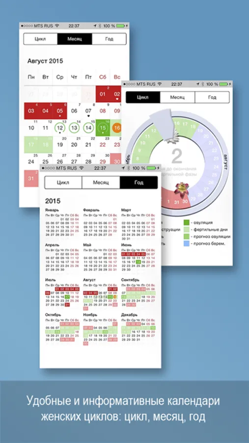 Эта программа для женщин. С ее помощью Вы легко сможете контролировать свои менструальные циклы. Программа постоянно будет анализировать Ваши предыдущие месячные и на их основе строить прогнозы начала следующих циклов. В программу заложены алгоритмы для прогноза дня овуляции и фертильных дней.