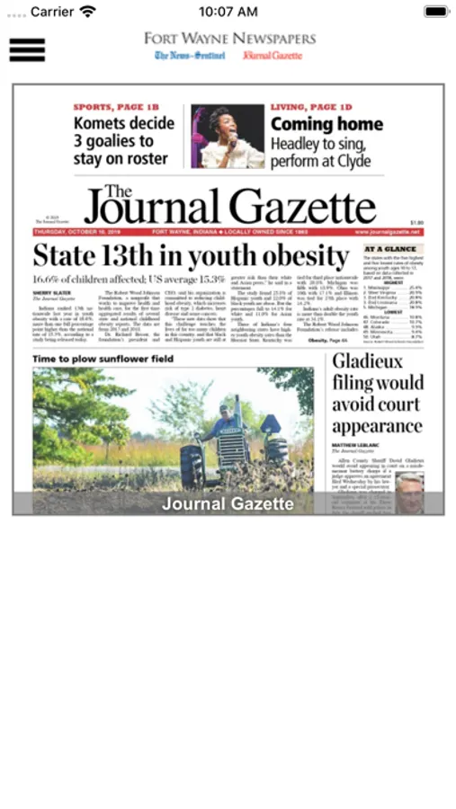 need it with the e-edition app from The Journal Gazette, Fort Wayne,