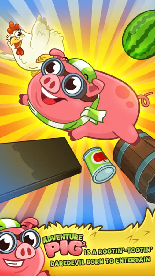 Adventure Pig is a rootin’-tootin’ daredevil that was born to entertain. Help the pot-bellied performer, along with a trusty chicken sidekick, take their ham-azing act far beyond the farm!
