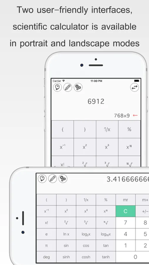1. Two user-friendly interfaces. Scientific calculator is available in portrait and landscape modes.