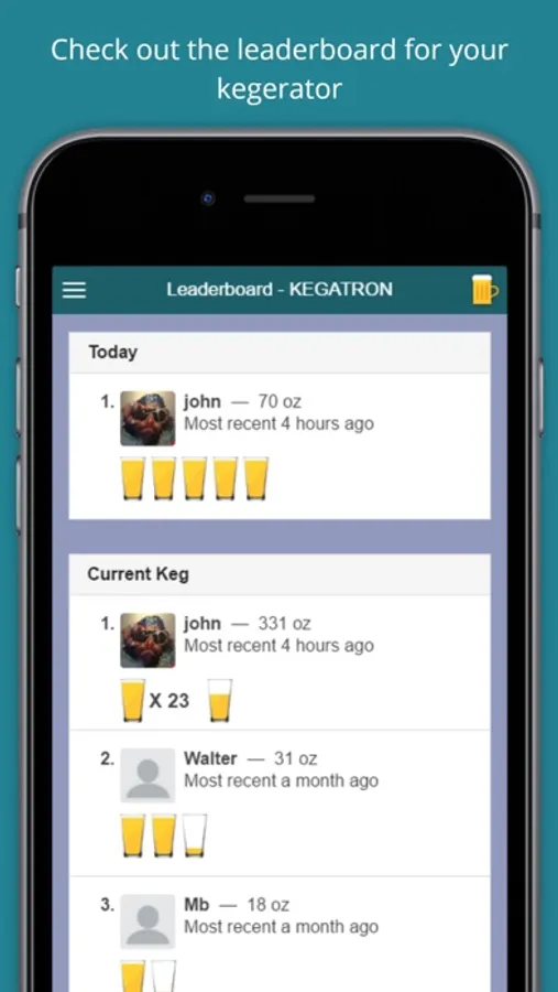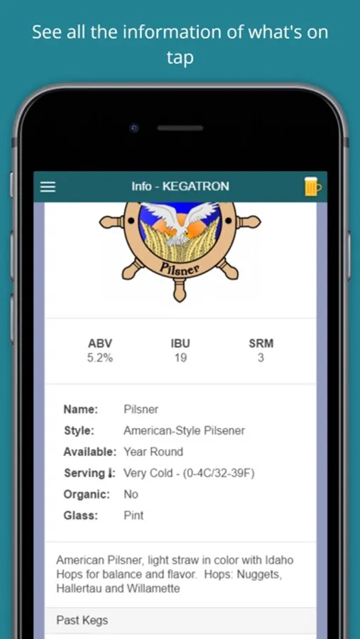 Previous Kegs - View all your past kegs for every tap. See historical data on who poured and when.