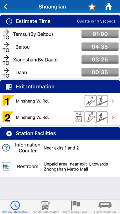 You can also use Taipei Metro Go to look up the schedule for the next train, and whether there are any YouBike stations nearby; look up transfer parking or transfer buses; which exit has an elevator or escalator, and which exit only has stairs; you can even use it to calculate the fastest route to your destination, so that you can plan ahead and travel at ease and with great convenience.