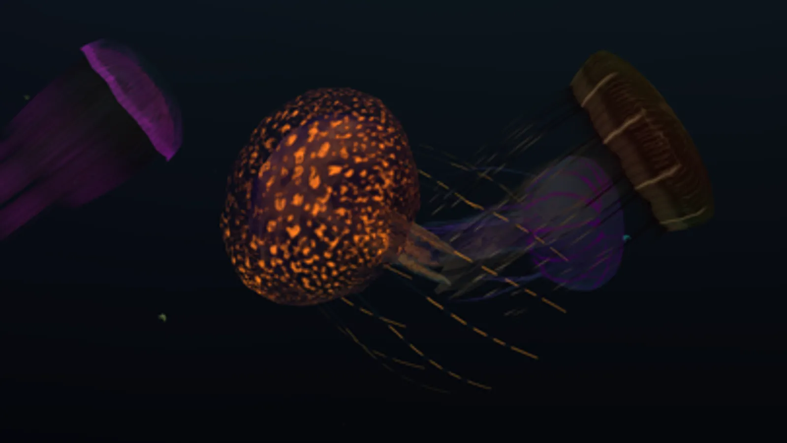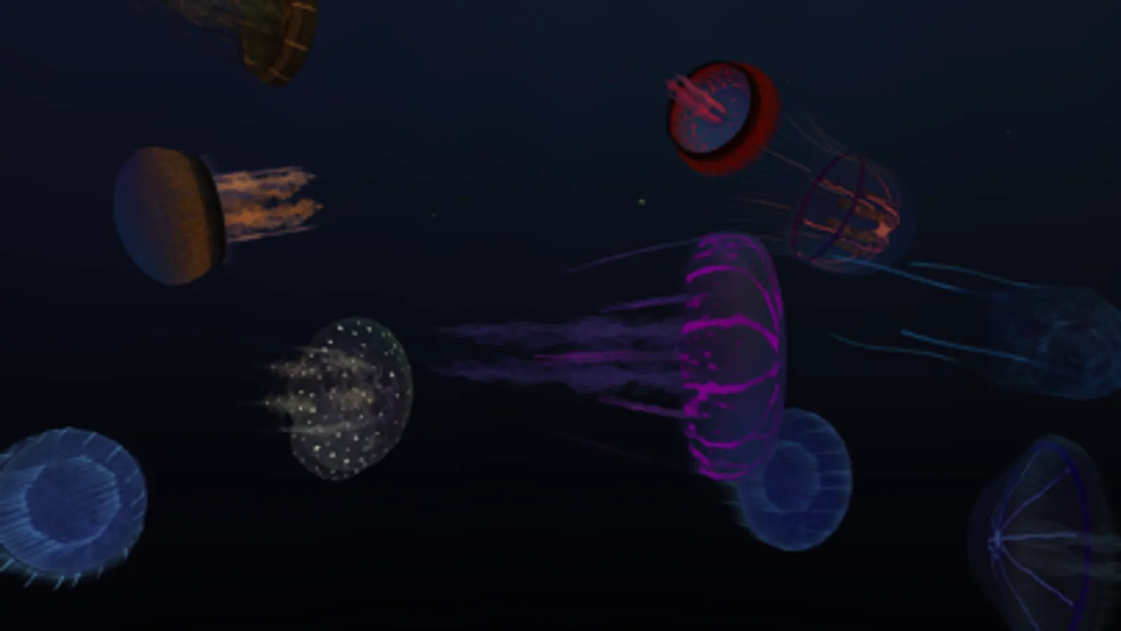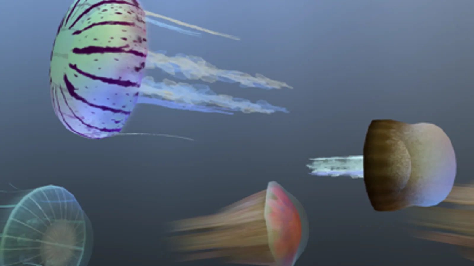 Relax and watch beautiful 3D-jellyfish swimming around.