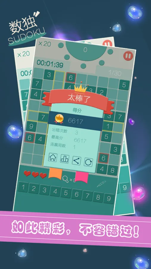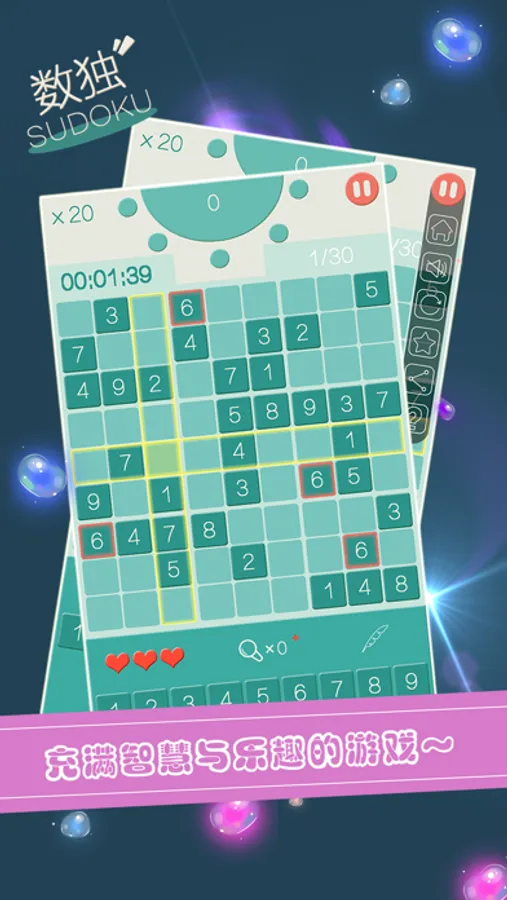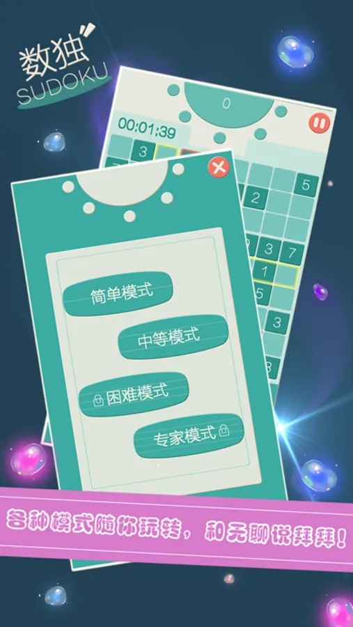 九宫格数独游戏分为4种难度:简单模式、中等模式、困难模式、专家模式;足够让那些脑力爱好者畅快的挑战一番了。还等什么,here wo go。