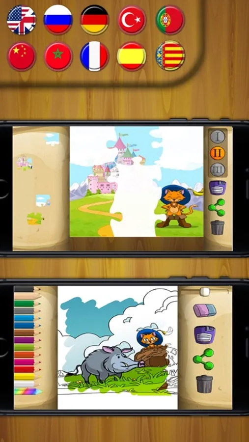 • Game 2 - Jigsaw puzzles of different scenes from the story with three levels of difficulty. Your children can play with interesting jigsaw puzzles while reading different parts of the story and discover the pictures.