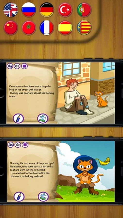 We offer your kids with the best selection of classic short stories and fairy tales to let your children have a fun time. This is one of the stories - Puss in Boots. An interactive book with story reading and educational and learning games like coloring and jigsaw puzzles for kids and children to entertain for hours.