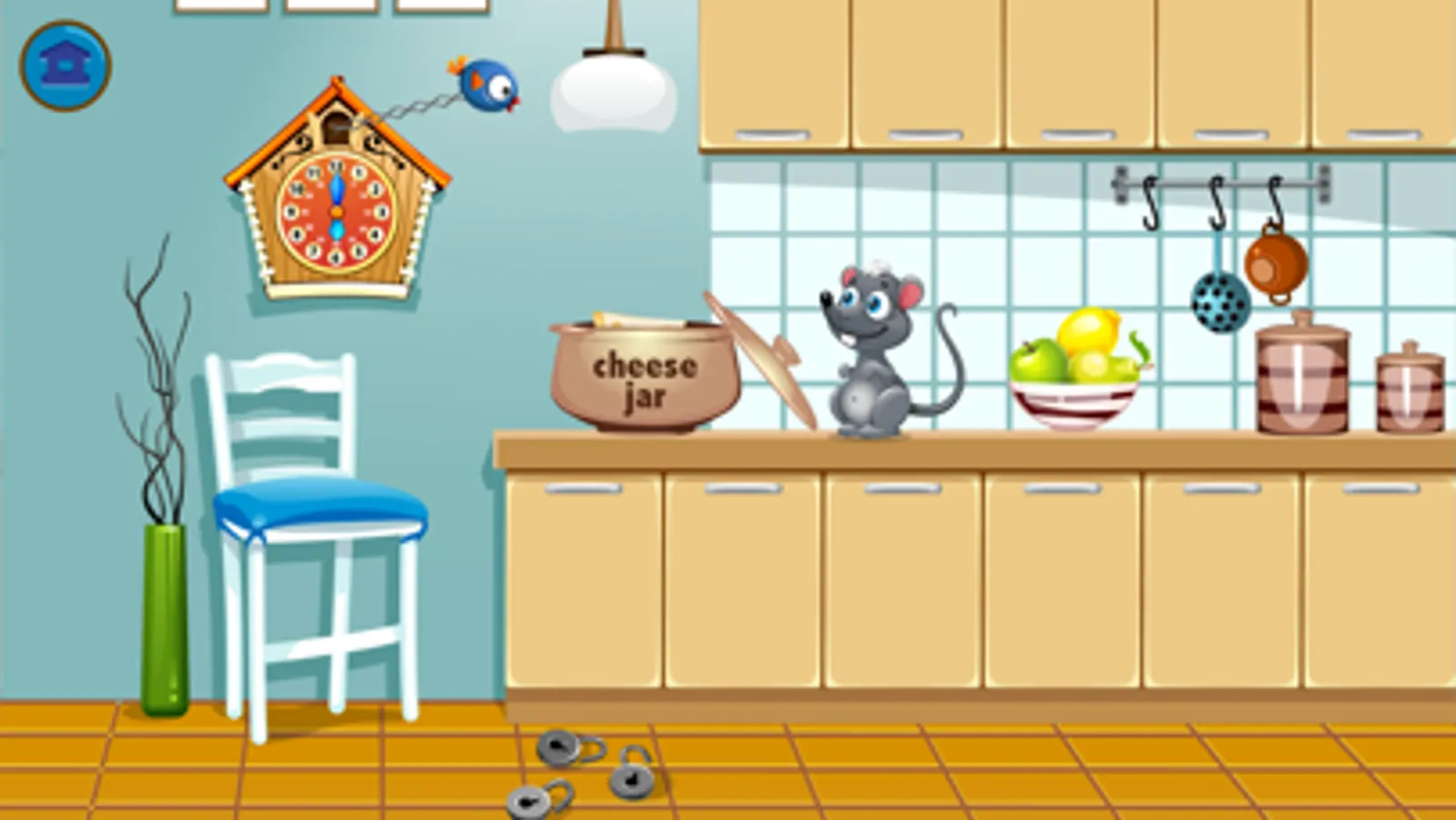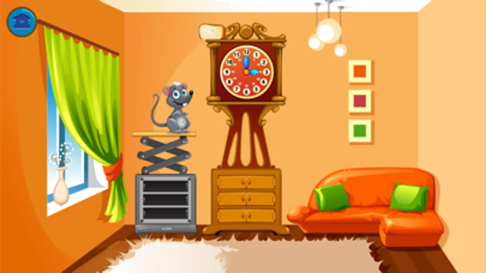 Travel through the four rooms of a house filled with clocks and help Ticky The Mouse collect the cheese and eat it by setting and telling the correct times on analog and digital clocks.
