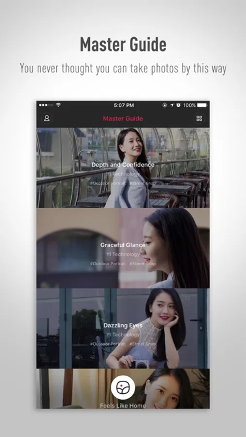 YI MILC captures the pain points of photographer beginners and introduces a revolutionizing portrait shooting feature‘Master Guide’. Templates in Master Guide are based on experiences of world-class portrait photographers. The camera will automatically adjust settings in accordance with the templates. All you need to do is to guide your model with help from the templates and press the shutter button. Become a master in an instant!