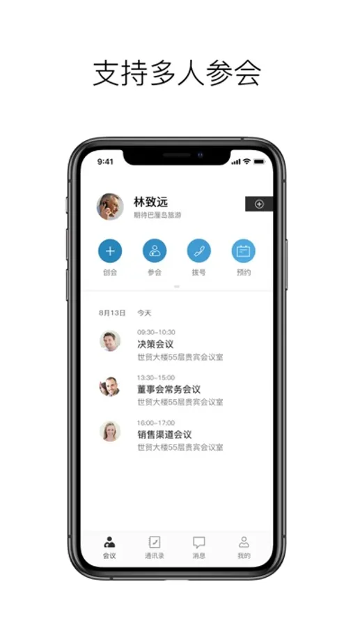 3.支持会议功能:点对点、多点的音视频会议及内容共享,让沟通毫无障碍。