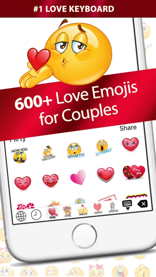Over 600 of the cutest love stickers! Super easy to use keyboard for messaging apps like Whatsapp, Facebook Messenger, iMessage etc.