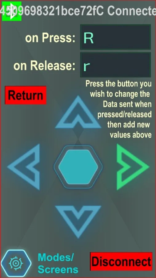 Set what Data string sends when each button is Pressed/Released (you can also leave onRelease() blank to send null)