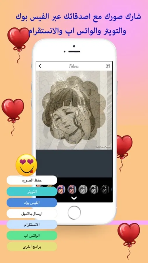 واخيرا يمكنك مشاركة الصوره على الفس بوك ، الانستقرام، الواتس اب، التويتر، وحتى ارسالها بالاميل.