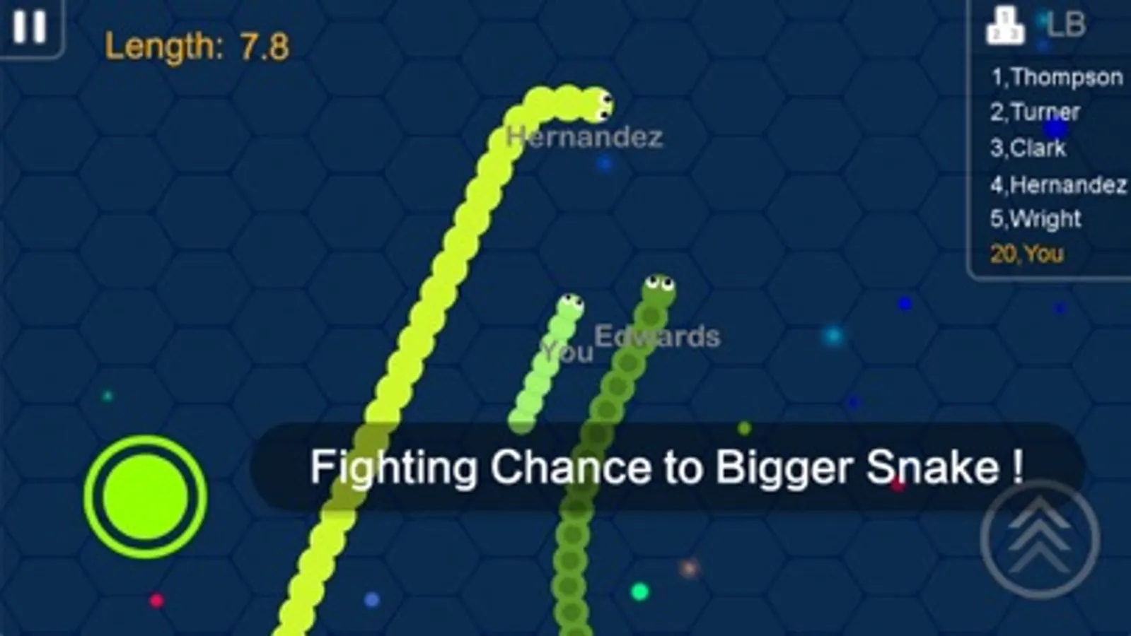 Try to let the enemies run into your tail to kill them. So you can kill a snake which is bigger than you.