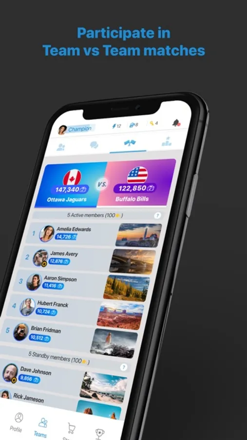 Join a team or create your own and take on challenges together! Participate in team vs team matches. Chat with other members and track your team score in real-time. Move up Team Leagues and win bigger prizes!