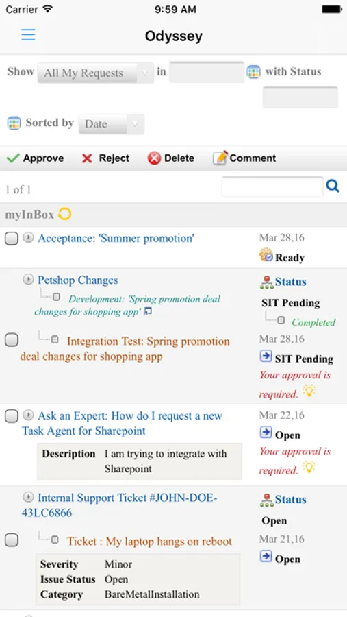 The Odyssey mobile app allows customers to integrate their Odyssey console into their mobile device and perform approvals and other workflow transactions on the dashboard regardless of where they are as long as they have internet connectivity.