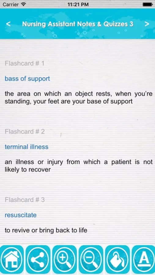 This app is a combination of sets, containing practice questions, study cards, terms & concepts for self learning & exam preparation on the topic of Nursing Assistant.