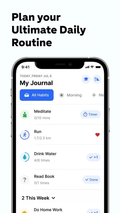 Effortlessly create and categorize habits based on the time of day and different aspects of your life to seamlessly integrate them into your daily routine.