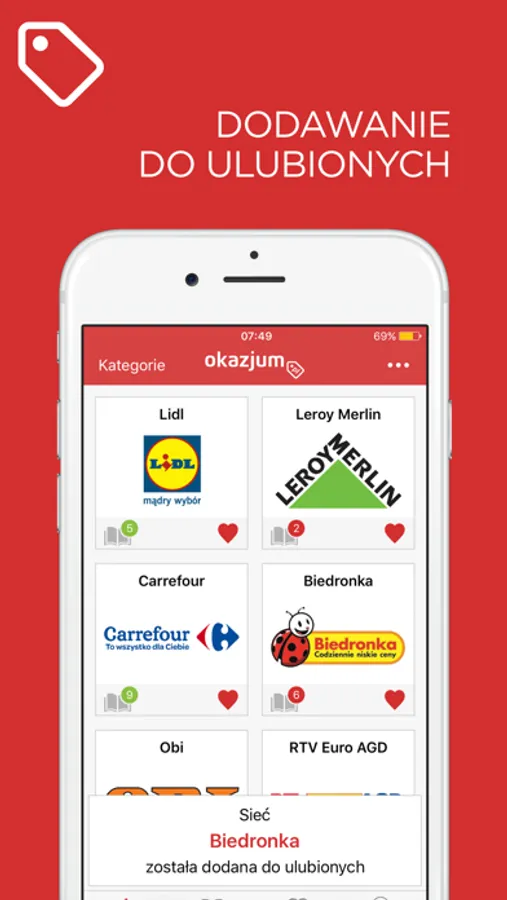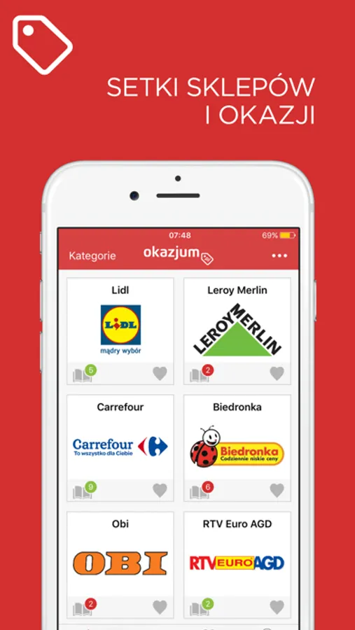 Promotions and sales are all in Okazjum, you can find here catalogues of Biedronka, Lidl, Auchan. Rossman, Stokrotka, Tesco and Kaufland. Its always better to have all promotions and sales in one app. We provide to you the best and the newest catalogues and brochures from different categories, such as: