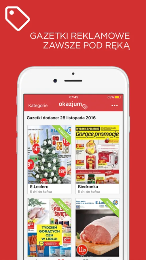 Okazjum it is a catalogue and sales app which helps you save money. The app is perfect for everyone, who loves going to malls or grocery stores. All you need is to install Okazjum on your cell phone. Its the most popular app with catalogues and brochures in Poland.