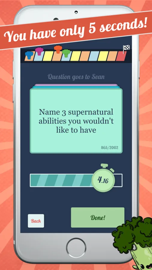 This game will make you scream ridiculous answers and will get your party jumping in no time. It's perfect for long car rides, family reunions, or just hanging out with friends. You'll be rolling on the floor laughing!