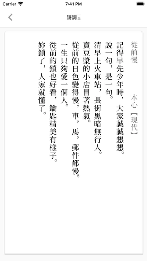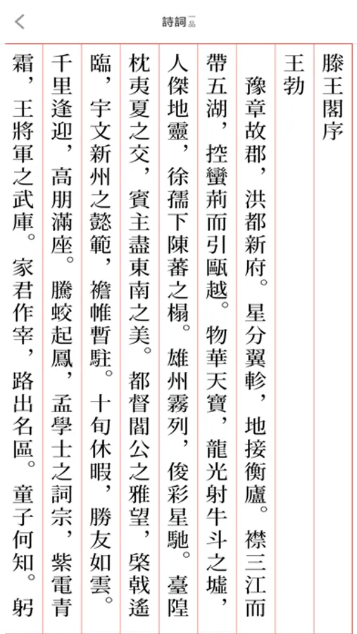 一品诗词全文均采用繁体字竖排版,对于所有入选诗词,笔者都对大陆,台湾出版的同类书籍,以及互联网上的内容进行了字形和读音的校对,力求将《一品诗词》做成一款精确优美的诗词App。