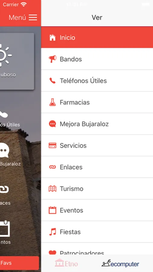 La app Etno de Bujaraloz con toda la información de la localidad, los bandos informativos, eventos culturales, programa de fiestas, guía de teléfonos útiles... Descubre todo lo que pasa en Bujaraloz al instante y recibe los bandos informativos en tu dispositivo móvil.