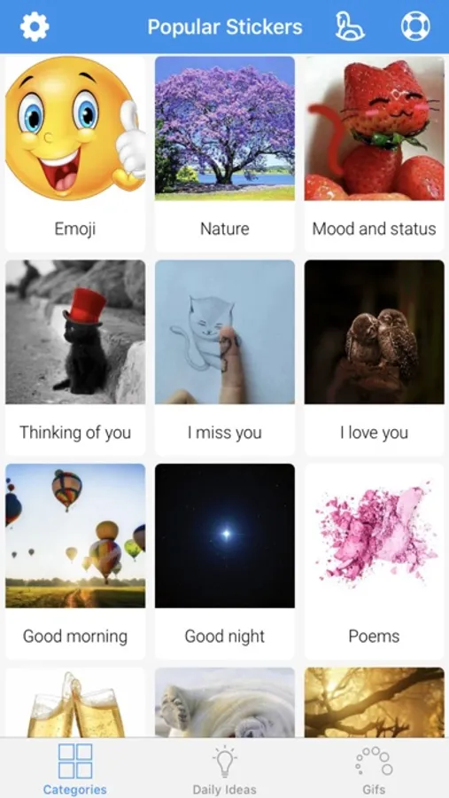 - I miss you, I think of you, I love you, How are you, Good morning, Good night…: 20 beautiful sticker categories